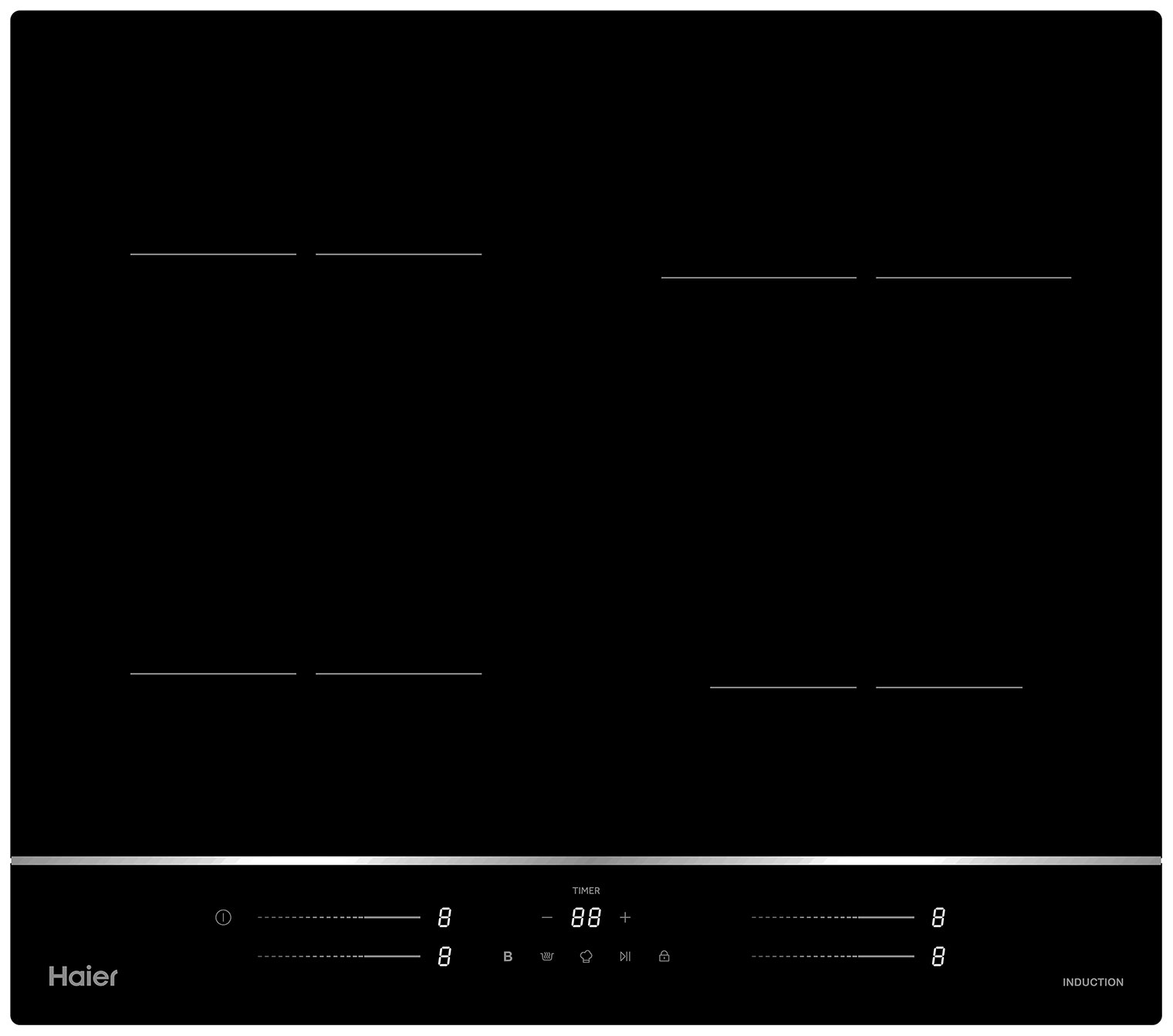 Индукционная варочная поверхность Haier HHY-Y64WSLB оснащена 4 конфорками, которые различаются между собой по размеру – 160, 180 и 210 мм. Функция Boost обеспечивает повышение мощности до максимальных значений для ускоренного нагрева и приготовления пищи. Функция Stop+Go позволяет на время отключать конфорку и включать ее обратно. С помощью таймера можно запрограммировать определенное время работы от 1 до 99 минут.